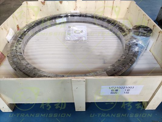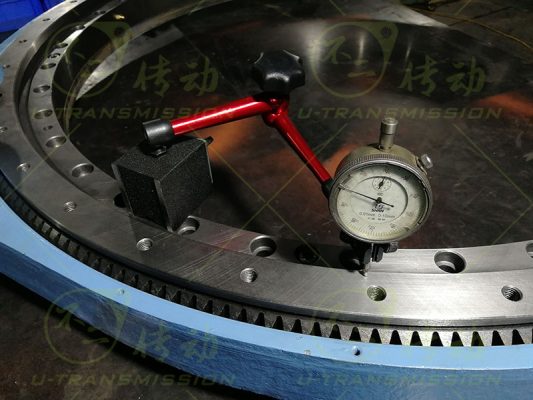 S-II-O-0941-MC外齒同向法蘭精密齒輪式回轉(zhuǎn)驅(qū)動(dòng)可以把減速機(jī)和電機(jī)安裝到上面,但是密封是一個(gè)問(wèn)題,由于傳動(dòng)齒輪的輸入端設(shè)計(jì)到了上面,回轉(zhuǎn)支承的外圈上不能安裝NBR橡膠密封,只能想辦法把密封安裝到殼體上。不二傳動(dòng)為客戶設(shè)計(jì)了鋼板密封,密封安裝在殼體上,堅(jiān)固安全,美觀實(shí)用,確保直齒驅(qū)動(dòng)的可靠性。精密型齒輪式回轉(zhuǎn)驅(qū)動(dòng)穩(wěn)定性非常重要,殼體采用加厚的球墨鑄鐵鑄件經(jīng)加工中心加工而成,精度和穩(wěn)定性得到保證,回轉(zhuǎn)支承依舊采用42CrMo調(diào)制、負(fù)游隙、磨齒,支撐軸承采用P5級(jí)精密軸承。不二傳動(dòng)設(shè)計(jì)團(tuán)隊(duì)豐富的經(jīng)驗(yàn)確保了部件之間相互配合的合理性,只有合理的配合才能做成精密的產(chǎn)品。