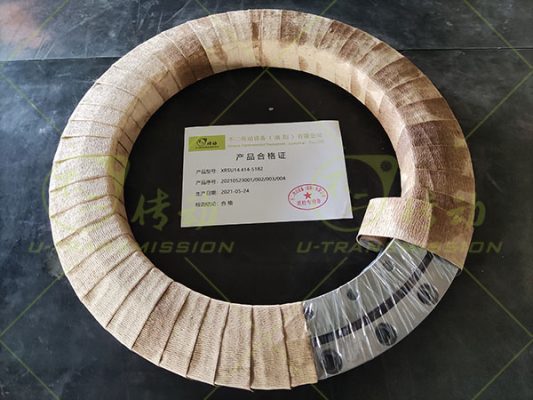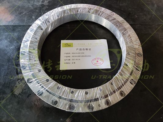 洛陽不二傳動給客戶提供的型號為XSU14.414的無齒式精密交叉滾子轉(zhuǎn)盤軸承,是用在自動化設(shè)備上,回轉(zhuǎn)中心直徑414mm,端跳:0.04mm,徑跳:0.04mm,游隙:0-0.03mm。精密交叉滾子轉(zhuǎn)盤軸承精度高,載荷大,抗傾覆力矩好,旋轉(zhuǎn)靈活,轉(zhuǎn)速較高,抗震性能好,并且精度保持時間很久,這種精密的回轉(zhuǎn)支承是不二傳動非常擅長做的。