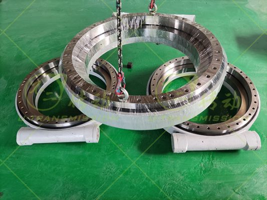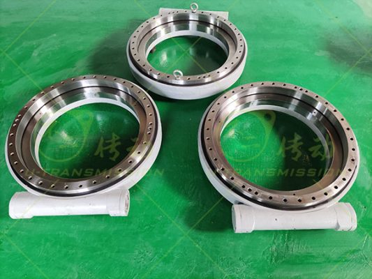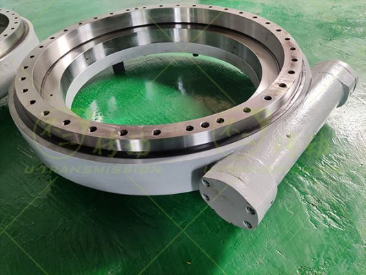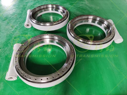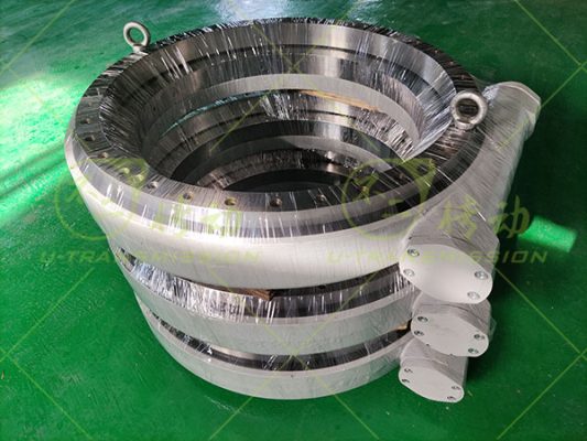 WEA35精密蝸輪蝸桿回轉驅動客戶用在重型設備上,要求回轉精度≤0.05°,客戶需要自鎖,減速比大,高輸出扭矩,所以給客戶設計了WEA35精密蝸輪蝸桿驅動,渦輪采用42CrMo調制,齒淬火,蝸桿采用鋼蝸桿,齒淬火,這樣設計能提高單齒承載,最大限度提高驅動的輸出扭矩。客戶要求反向自鎖,只能由蝸桿帶動蝸輪,而不能由蝸輪帶動蝸桿,這樣在設備關機或者無動力的情況下仍能保證設備靜止不動,非常安全可靠。蝸桿傳動相當于螺旋傳動,多齒同時嚙合,傳動平穩(wěn)、噪音很小。