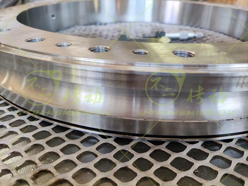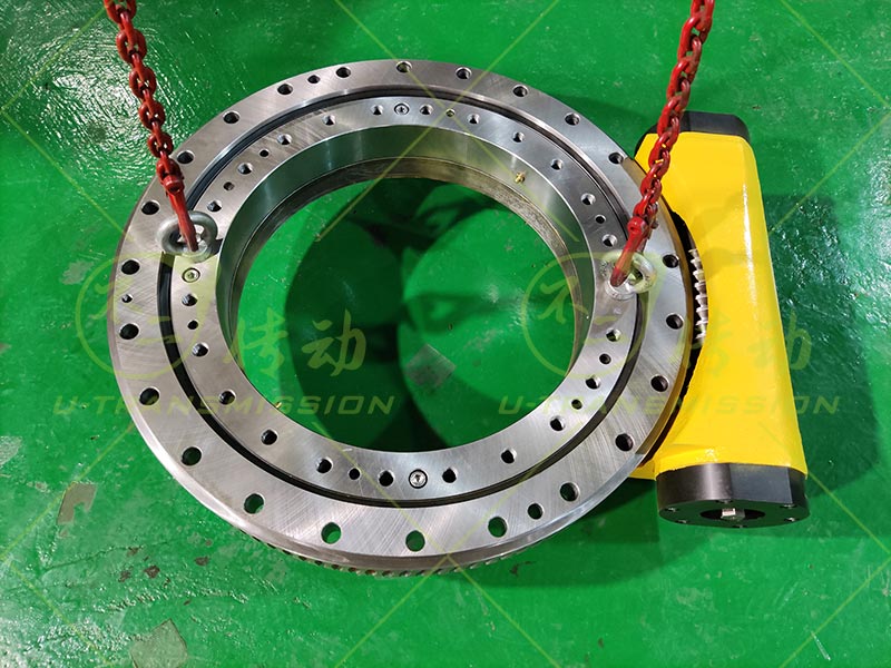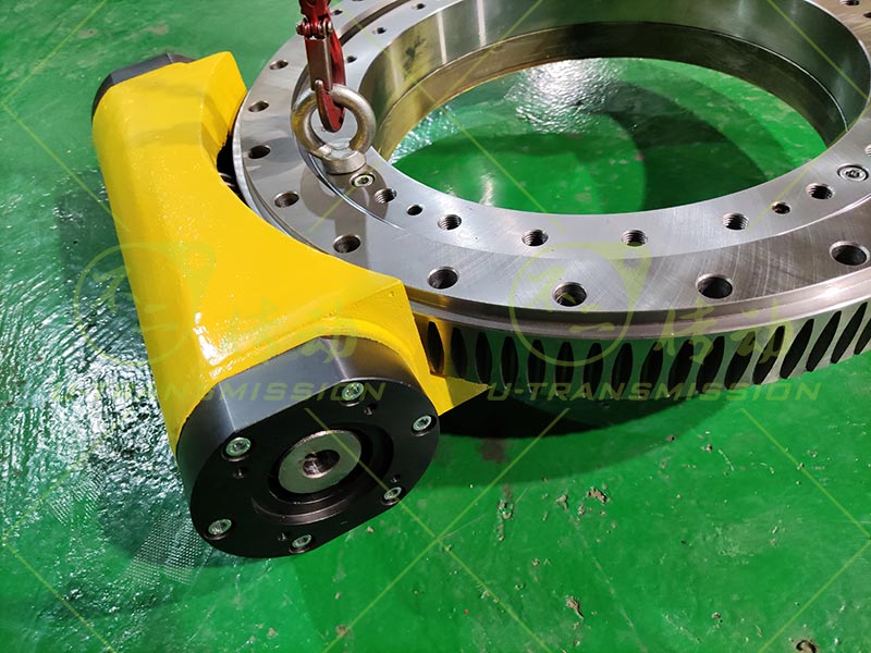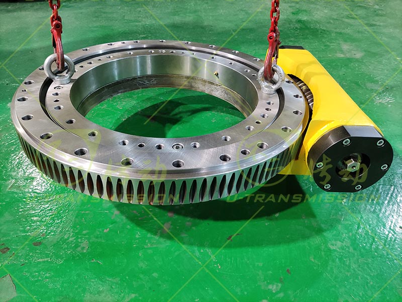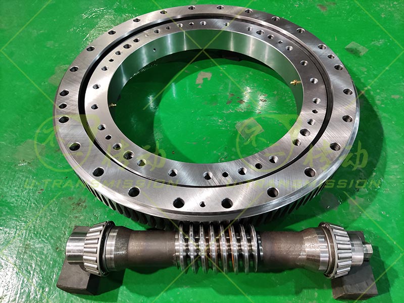 回轉(zhuǎn)驅(qū)動殼體使用加工中心加工而成,保證配合尺寸精準,合理的工藝安排保證蝸桿軸向竄動量滿足設計要求,回轉(zhuǎn)支承采用小游隙高精度,保證回轉(zhuǎn)支承的端跳徑跳,嚴格控制齒精度,確保最終裝配出較高精度的回轉(zhuǎn)驅(qū)動。