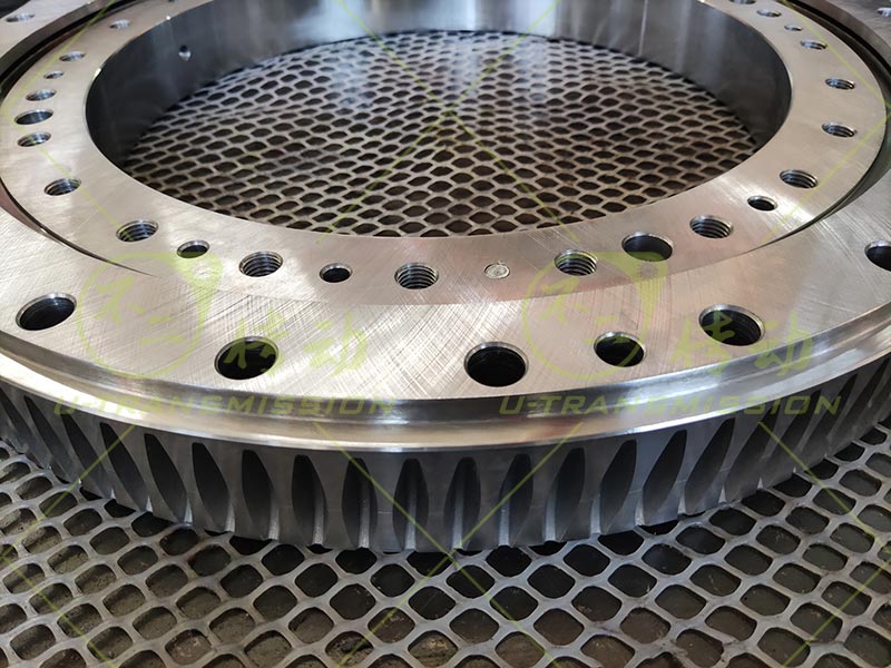 W25開式蝸輪蝸桿回轉(zhuǎn)驅(qū)動使用在自動化設備上,客戶水平方向安裝空間受限,需要限制回轉(zhuǎn)驅(qū)動的外徑尺寸,需要大輸出扭矩和大的減速比,根據(jù)客戶需求,不二傳動為客戶設計了25寸開式蝸輪蝸桿驅(qū)動,為了客戶可以順利安裝通過舍棄圍欄,齒修頂來減小回轉(zhuǎn)驅(qū)動的外徑,驅(qū)動輸入端按照客戶減速電機接口尺寸設計適配法蘭,客戶可以直接連接使用,非輸入端設計可以手動的六角頭,方便客戶在安裝調(diào)試或者緊急狀況下可以手動旋轉(zhuǎn)驅(qū)動。
