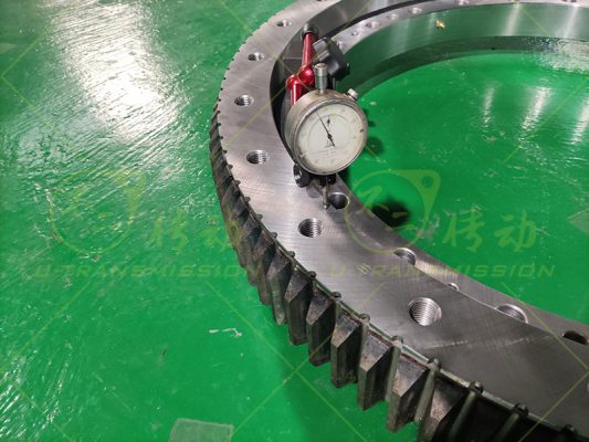 重載加強(qiáng)型0800齒輪式回轉(zhuǎn)驅(qū)動(dòng)應(yīng)用在工程機(jī)械上,針對(duì)客戶的工況,不二傳動(dòng)工程師在常規(guī)重載驅(qū)動(dòng)的基礎(chǔ)上進(jìn)行改進(jìn),優(yōu)化設(shè)計(jì),對(duì)關(guān)鍵部件進(jìn)行加強(qiáng),對(duì)可能出現(xiàn)問題的部件進(jìn)行高可靠性設(shè)計(jì),確保驅(qū)動(dòng)在使用中穩(wěn)定可靠?;剞D(zhuǎn)驅(qū)動(dòng)的齒圈和齒輪采用表面淬火,淬火工藝采用單齒淬火,保證齒表面堅(jiān)硬耐磨,承載高,齒芯部柔軟耐沖擊,在大扭矩和沖擊載荷的情況下保證齒的可靠性。