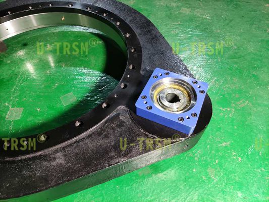 高轉(zhuǎn)速大承載780直齒回轉(zhuǎn)驅(qū)動的回轉(zhuǎn)中心直徑780mm,具有轉(zhuǎn)速高,承載大的特點,是不二傳動的工程師根據(jù)客戶要求定制的一款特殊的回轉(zhuǎn)驅(qū)動。殼體整體進行加強設計,支撐軸承選用載荷更大系列的,支撐軸承選用E系列加強設計,選用國內(nèi)一線品牌,配合上進行優(yōu)化,更適合客戶的特殊工況。選型設計過程中跟客戶深入溝通,對行星減速機,電機的選配進行充分論證,確保產(chǎn)品到客戶現(xiàn)場運轉(zhuǎn)順利。