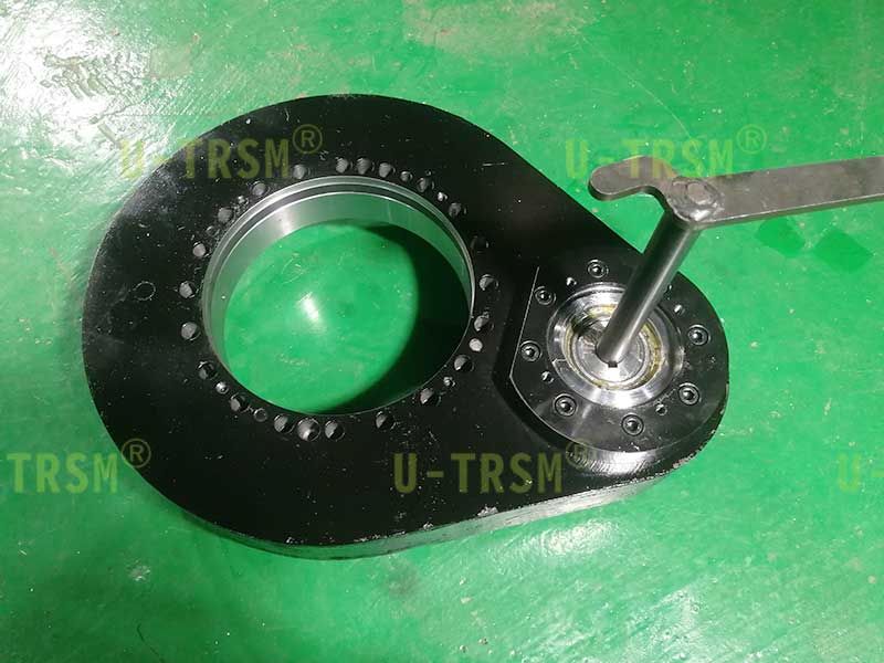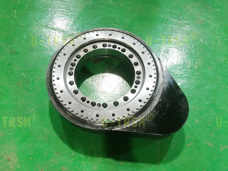 II系列的回轉(zhuǎn)驅(qū)動(dòng)模數(shù)6,回轉(zhuǎn)支承高度及殼體厚度都比I系列厚,綜合承載上比I系列的大,齒采用模數(shù)6比I系列輸出扭矩大,減速比大于III系列,是個(gè)非常折中的方案,為了方便客戶(hù)安裝,將適配法蘭切掉一塊,在不影響回轉(zhuǎn)驅(qū)動(dòng)強(qiáng)度和結(jié)構(gòu)的情況下滿(mǎn)足了客戶(hù)的安裝需求。