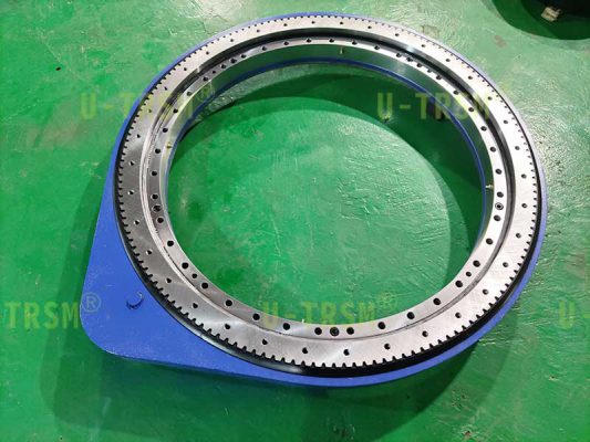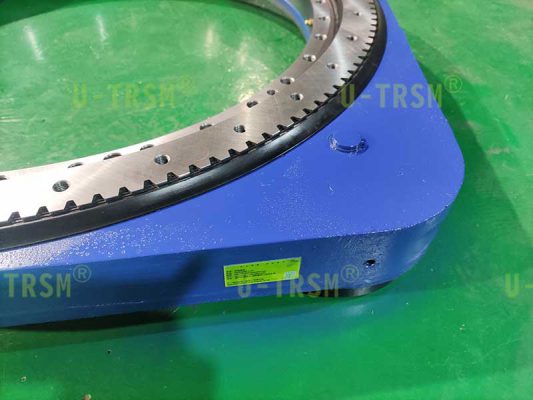 型號為S-II-O-0841的外齒回轉(zhuǎn)驅(qū)動,是不二傳動的工程師為客戶設(shè)計的一款應(yīng)用在自動化設(shè)備上的產(chǎn)品?;剞D(zhuǎn)驅(qū)動需要水平安裝在設(shè)備的平臺上,帶動上面的轉(zhuǎn)臺旋轉(zhuǎn)。而在轉(zhuǎn)臺上則安裝了一個可以在豎直面上旋轉(zhuǎn)的裝置,這樣就由回轉(zhuǎn)驅(qū)動和豎直面上的裝置組成了一個兩軸聯(lián)動的旋轉(zhuǎn)機構(gòu),以此來完成一些特定的旋轉(zhuǎn)動作。