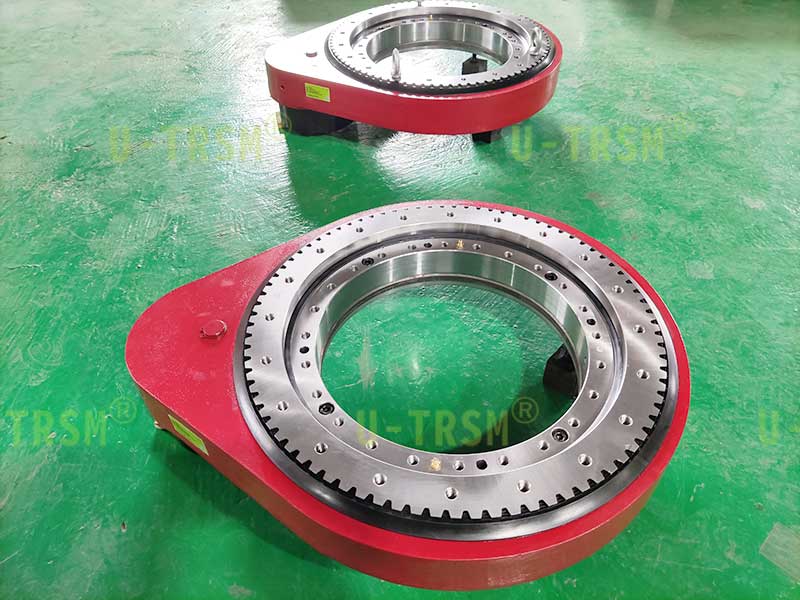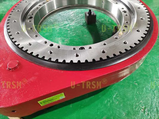 我們的工程師根據(jù)客戶的這些需求,結(jié)合客戶的設(shè)備允許的空間尺寸,設(shè)計(jì)了這款S-II-O-0450回轉(zhuǎn)驅(qū)動(dòng)。此驅(qū)動(dòng)中的回轉(zhuǎn)支承和小齒輪采用模數(shù)6的齒,并且對(duì)齒進(jìn)行淬火加工。原材料選用42CrMo鍛件,并對(duì)原材料進(jìn)行調(diào)質(zhì)處理。齒輪的支承軸承進(jìn)行強(qiáng)化設(shè)計(jì),完全滿足客戶對(duì)大輸出扭矩的要求。
