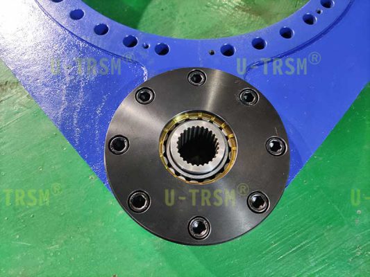 回轉(zhuǎn)驅(qū)動(dòng)內(nèi)部的回轉(zhuǎn)支承采用零游隙,以此來確保傳動(dòng)平穩(wěn),并且不損失回轉(zhuǎn)精度。齒輪和齒圈使用數(shù)控磨齒機(jī)磨齒,保證齒精度??蛻舻臏p速機(jī)連接法蘭非常大,并且需要使用傳動(dòng)軸進(jìn)行動(dòng)力傳遞。所以我們又給客戶適配加工了傳動(dòng)軸,而且傳動(dòng)軸采用漸開線花鍵連接,可以同時(shí)保證傳動(dòng)精度和傳動(dòng)可靠性。