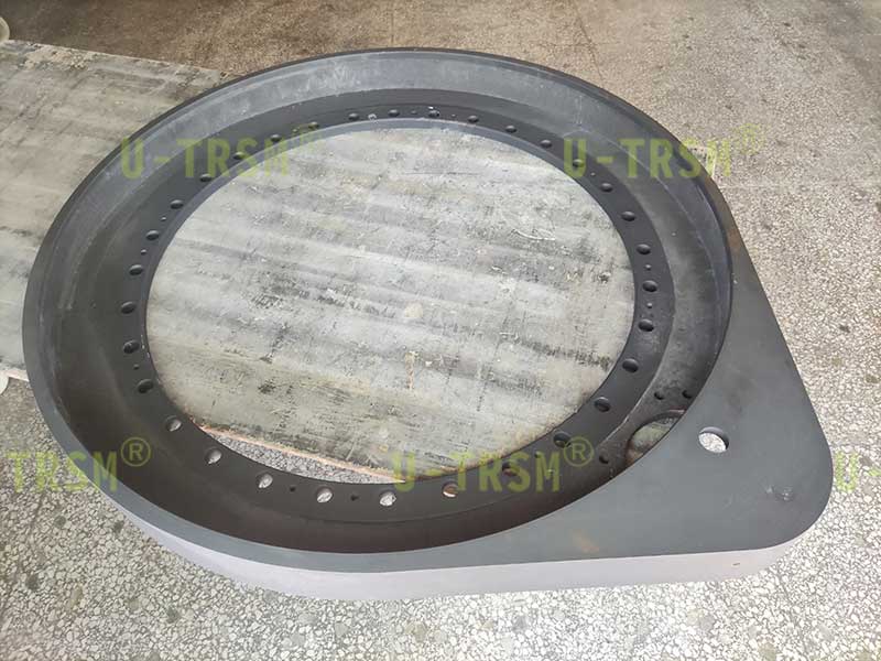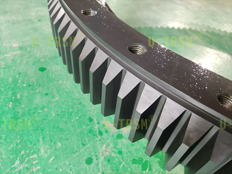 回轉(zhuǎn)支承零游隙,跳動(dòng)0.03mm,齒淬火后進(jìn)行磨齒,客戶要求回轉(zhuǎn)支承整體進(jìn)行錳磷化處理,為了保證成品的精度,我們采用了特殊的工藝,確保磷化后回轉(zhuǎn)支承的精度。