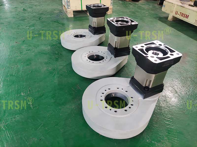 客戶需要我們配套合適的減速機,根據使用工況,我們選擇了輸出扭矩和減速比都適合的行星減速機,并且對減速機和回轉驅動做了適配設計。發(fā)貨前我們?yōu)榭蛻舭惭b好行星減速機,客戶收到貨,直接連接伺服電機回轉單元就可以旋轉使用了,非常的方便。