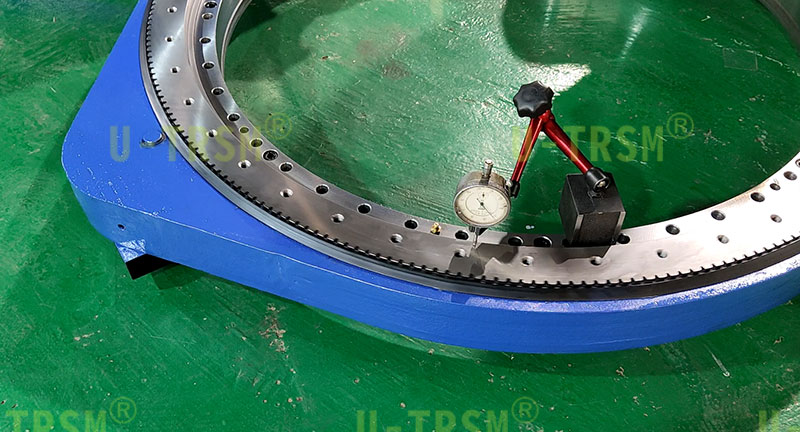 在生產(chǎn)過程中把回轉(zhuǎn)支承的齒跳控制在0.05mm以內(nèi),小齒輪齒跳控制在0.03mm以內(nèi),保證齒跳是保證齒間隙的前提,加工完成后,裝配調(diào)試同等重要,精密產(chǎn)品需要經(jīng)過反復(fù)的調(diào)試檢測(cè),直到產(chǎn)品滿足客戶的要求為止。