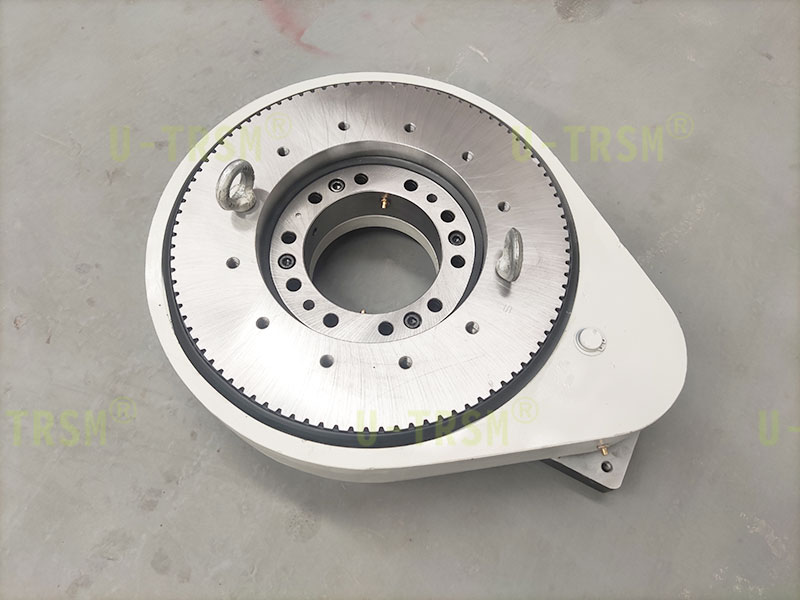 S-I-O-0235斜齒回轉(zhuǎn)驅(qū)動(dòng)是不二傳動(dòng)的工程師為某車間流水線特殊設(shè)計(jì)的一款回轉(zhuǎn)驅(qū)動(dòng),在設(shè)備上豎直安裝使用。
