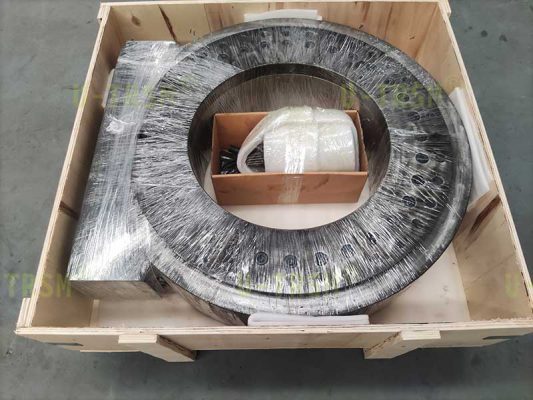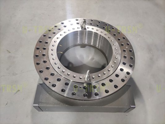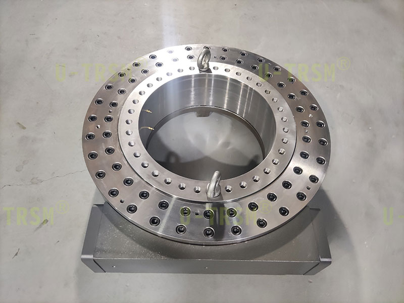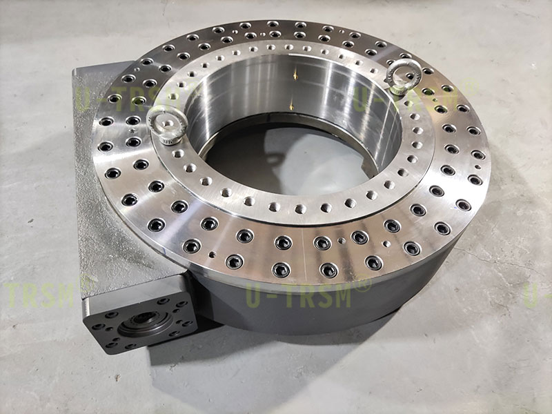 WDE25 大傾覆力矩雙排交叉滾子內(nèi)圈旋轉(zhuǎn)回轉(zhuǎn)驅(qū)動(dòng)應(yīng)用在特殊設(shè)備上,用戶要求回轉(zhuǎn)驅(qū)動(dòng)要承受大于大于550KN.M的傾覆力矩。設(shè)計(jì)一款可以承受大傾覆力的回轉(zhuǎn)驅(qū)動(dòng)不是什么困難的事情,但是客戶需要的是替換原來(lái)的舊回轉(zhuǎn)驅(qū)動(dòng),這就要求我們?cè)诓桓淖儼惭b尺寸和舊回轉(zhuǎn)驅(qū)動(dòng)的使用原則的情況下按照我們的思路設(shè)計(jì)一個(gè)回轉(zhuǎn)驅(qū)動(dòng),并且這個(gè)回轉(zhuǎn)驅(qū)動(dòng)還要能承受更大的傾覆力矩。