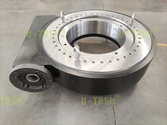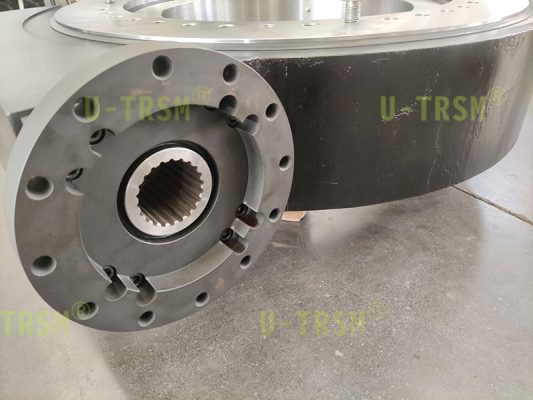 不二傳動工程師應對此種工況,為客戶設計選型WZ-Ⅲ-O-2-0620雙排球大模數(shù)重載型蝸輪蝸桿回轉(zhuǎn)驅(qū)動,并對齒面進行淬火處理,提高了齒的性能以達到客戶的使用要求。不二傳動設計的WZ-Ⅲ重載型蝸輪蝸桿式回轉(zhuǎn)驅(qū)動作為轉(zhuǎn)向裝置,能實現(xiàn)很高的輸出扭矩,具備承受很大傾覆力矩的能力,并具有非常緊湊的設計結(jié)構(gòu),全防護的設計能達到IP65的防護等級。