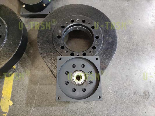 S-I-O-0300 適配大尺寸減速電機(jī)回轉(zhuǎn)驅(qū)動(dòng)應(yīng)用在特種設(shè)備上,客戶使用回轉(zhuǎn)驅(qū)動(dòng)帶動(dòng)轉(zhuǎn)臺(tái)旋轉(zhuǎn)固定的角度,轉(zhuǎn)臺(tái)上設(shè)計(jì)有限位裝置,回轉(zhuǎn)驅(qū)動(dòng)只要能穩(wěn)定旋轉(zhuǎn)就可以,齒只需要堅(jiān)固耐用,可以傳遞扭矩就行。