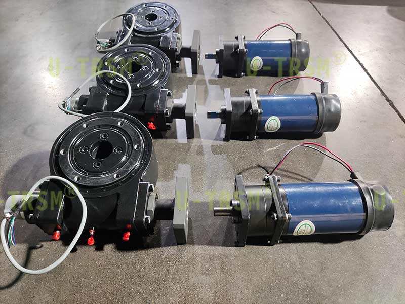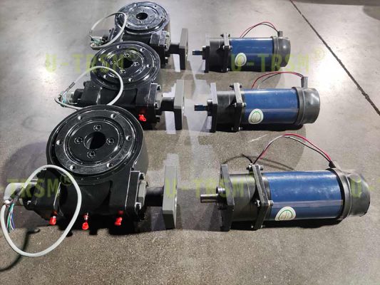 輸入端為客戶配套了減速機直流電機,通過適配法蘭連接,電機和減速機性能參數(shù)前期選型的時候已經(jīng)完成計算。在設(shè)計初期,您只需要把要求告訴我們就行,選型計算,設(shè)計適配,生產(chǎn)檢測這些都是我們擅長的,您只管提要求,剩下的交給不二傳動。