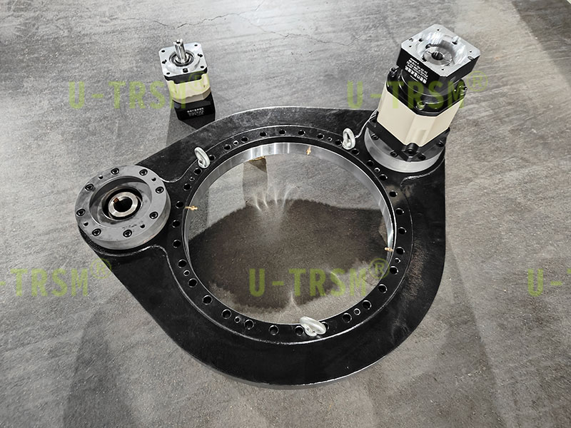 雙輸入的設(shè)計原理基于不同齒輪精度自然形成的中和效果。在實際運行中,通過電機,運用機械原理,其中一個驅(qū)動設(shè)備會對一個小齒輪施加一個不為 0 的扭矩。同時,為了避免傳動齒輪出現(xiàn)運動間隙,在回轉(zhuǎn)驅(qū)動工作過程中,不二傳動設(shè)計確保至少有一個驅(qū)動設(shè)備始終處于工作狀態(tài)。這樣一來,無論在何種工況下,齒輪都能保持緊密嚙合,有效消除了運動間隙。?