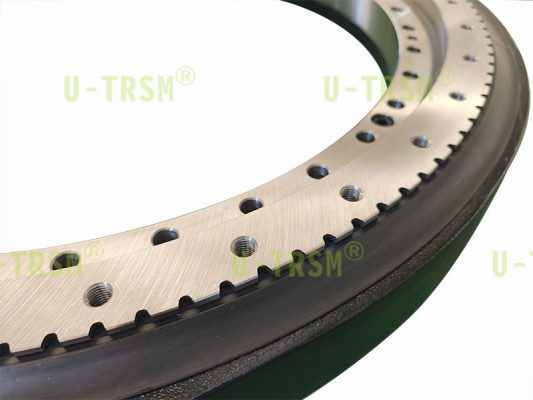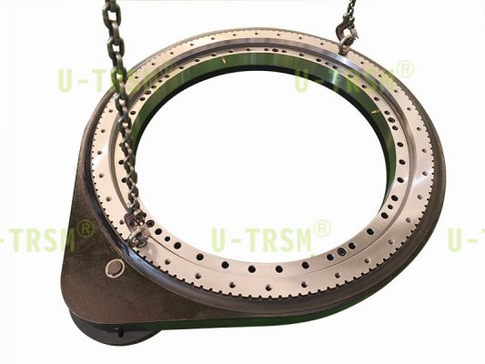 此款回轉減速機應用于自動化攪拌設備上,客戶要求使用時,同一個方向旋轉,勻速,轉速較高,支承攪拌桶要求不能有晃動,啟動與停止都是漸入漸出比較緩慢,不二傳動設計工程師根據客戶提供被攪拌工件的載荷,選擇了重載系列0655回轉減速機,此款回轉減速機最高轉速61r/min,完全滿足客戶使用,采用負游隙設計,使得旋轉時極大的減小晃動,并且磨齒設計在旋轉時更加的平穩(wěn),端面跳動≤0.05,高精度的設計。